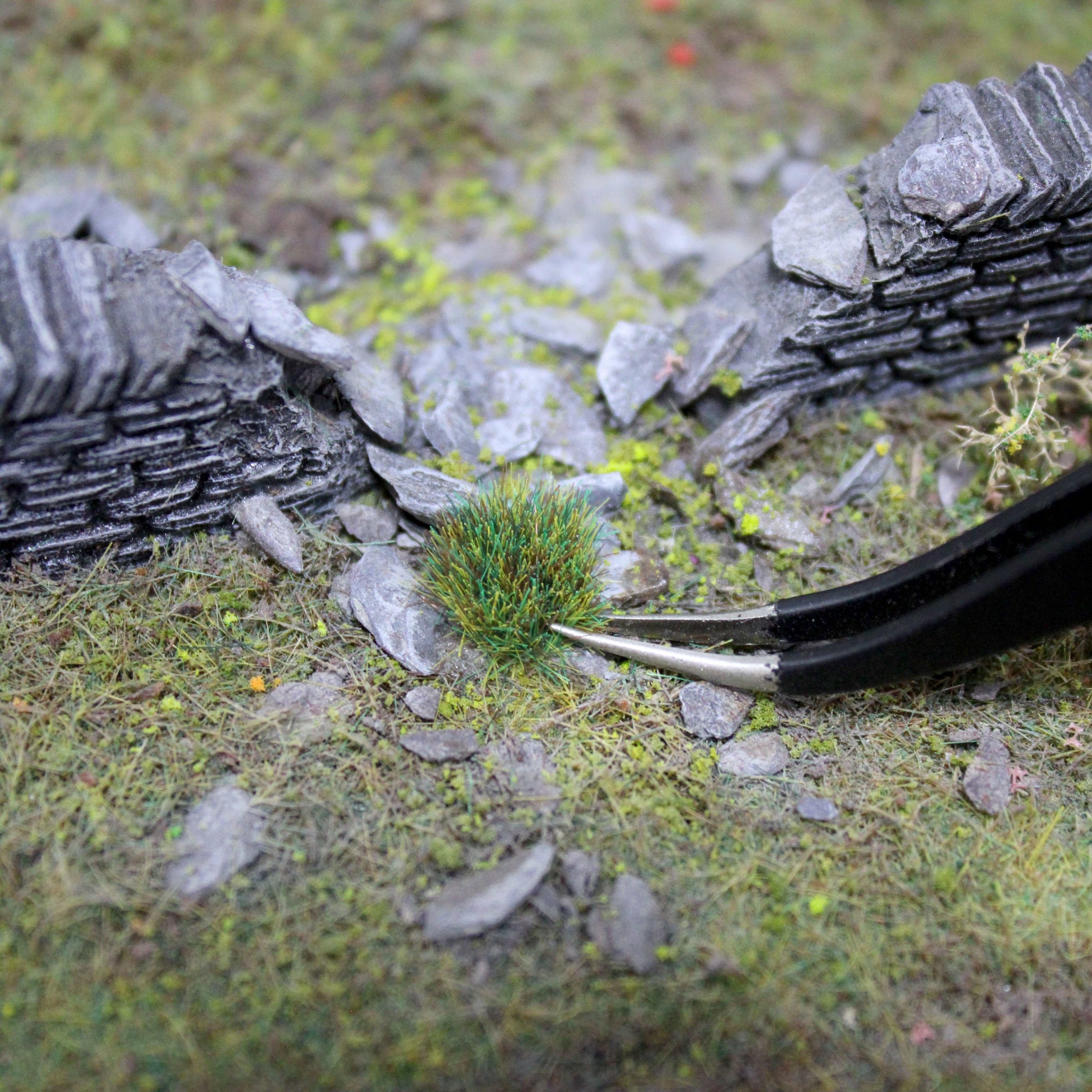 WSScenics 4mm Tufts replicate short to mid-length grass. Self-adhesive for quick application—ideal for fields, paths, and railway scenery.
